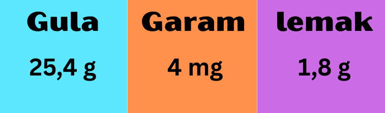 Dalam 1 sajian (540 ml) terdapat kandungan gula 25,4 gr/50 gr (50,8%) dari batasan harian kemenkes, ini setara dengan 2 sendok makan.