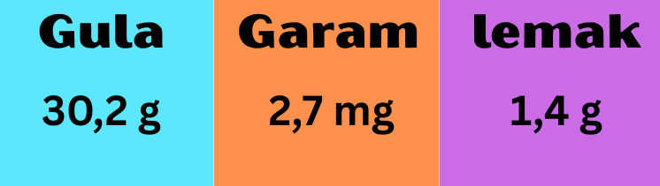 Dalam 1 sajian (540 ml) terdapat kandungan gula 30,2 gr/50 gr (60,2%) dari batasan harian kemenkes, ini setara dengan 2 sendok makan.