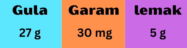 Dalam 1 sajian (450 ml) terdapat kandungan gula 27 gr/50 gr (54%) dari batasan harian kemenkes, ini setara dengan 2 sendok makan.