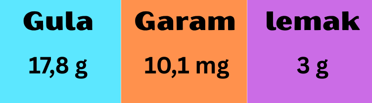 Dalam 1 sajian (450 ml) terdapat kandungan gula 17,8 gr/50 gr (35,6%) dari batasan harian kemenkes, ini setara dengan 1,5 sendok makan gula pasir.