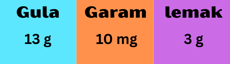 Dalam 1 sajian (450 ml) terdapat kandungan gula 17,8 gr/50 gr (26%) dari batasan harian kemenkes, ini setara dengan 1,5 sendok makan gula pasir.