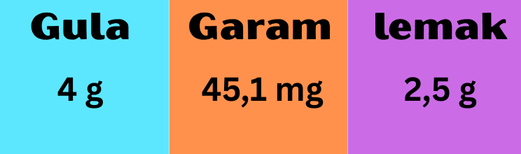 Dalam 1 sajian (450 ml) terdapat kandungan gula 4 gr/50 gr (8%) dari batasan harian kemenkes, ini setara dengan 1/2 sendok makan.