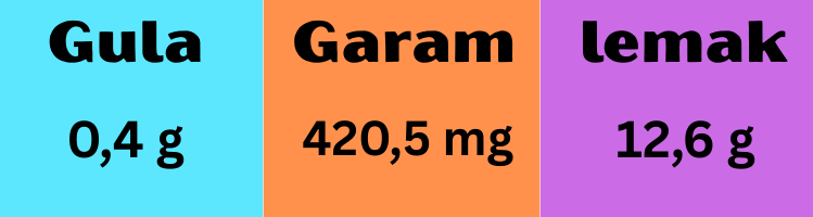 Dalam 1 sajian (295 gr) terdapat kandungan natrium 420,5 mg/2.000 mg (21%) dan lemak 12,6 gr/67 gr (19%) dari batasan harian kemenkes.
