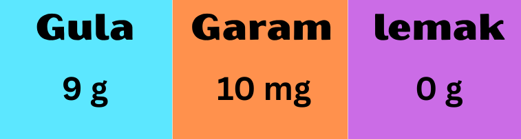 Dalam 1 sajian (450 ml) terdapat kandungan gula 9 gr/50 gr (18%) dari batasan harian kemenkes, ini setara dengan 1,5 sendok makan.