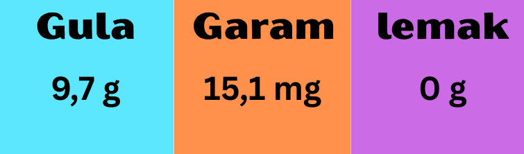 Dalam 1 sajian (450 ml) terdapat kandungan gula 9,7 gr/50 gr (19,7%) dari batasan harian kemenkes, ini setara dengan 1/2 sendok makan.